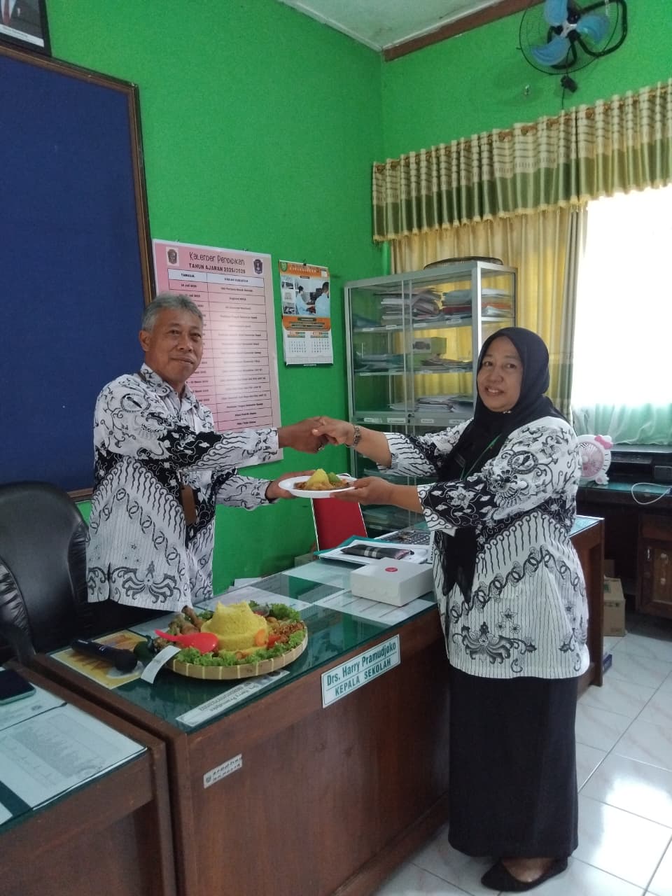Penyerahan kenang-kenangan dari OSIS kepada Bapak, ibu Guru, Karyawan yang purna tugas